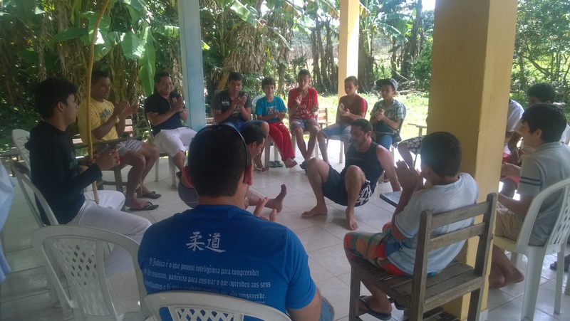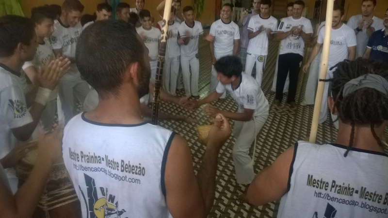 Recebemos as visitas de Mestre Bebezão e Mestre Prainha, capoeiristas de Fortaleza, reconhecidos nacionalmente. Vieram conhecer os nossos trabalhos e participar da troca de corda dos nossos alunos. Numa festa linda, as crianças empolgadas deram um bonito show de maculelè, e participaram dos jogos de roda.